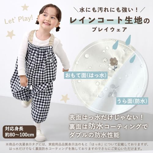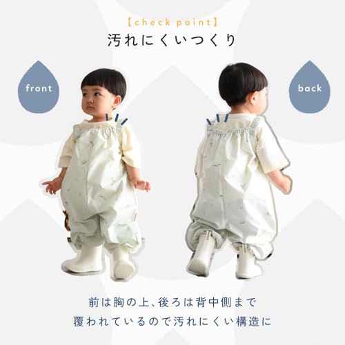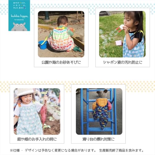 プレイウェアは「砂場着」とも呼ばれていて、子供が外遊びをするときに洋服の上から着せる汚れ防止用のウェアなんです。撥水加工や防水加工が施されているものが多くて、砂や泥、水から大切な洋服を守ってくれます。